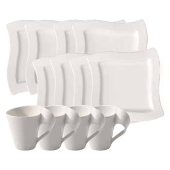 Contemporary chic- The New Wave collection by Villeroy Boch adds fluidity and style to your table with clean lines and original eye-catching designs. Made in Germany from high-quality porcelain, the unique contemporary collection will elevate your special occasions and everyday dining. The twelve piece set includes four each: dinner plate, salad plate, and mug. Earn yourself a little more leisure time with dishwasher safe durability and microwave safe convenience. High-quality German-made porcelain provides upscale appeal and lasting durability. Villeroy Boch has been a premium manufacturer of fine porcelain, glassware, flatware, and more since 1748.