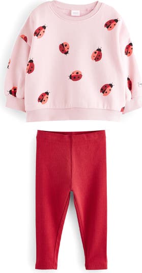 Cute and cozy—this cotton-rich set with a soft fleece sweatshirt and coordinating ribbed leggings ticks all the boxes for a kid-approved look.