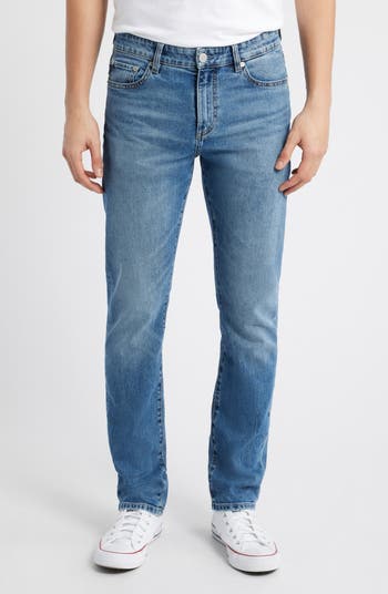 Slim and streamlined from thigh to hem, these jeans are made from shape-retaining denim in a versatile medium wash with fading and whiskering.