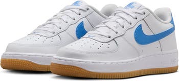 The basketball shoe that started a sensation keeps on shooting and scoring as a sneaker reissued for smaller feet that want to kick around in bigger style. The iconic Air Force 1 sole sports embedded Nike Air cushioning and crenellations along the tread that frame a star-studded bumper toe.