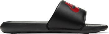 Lightweight cushioning meets supportive comfort in beach-to-bleachers sliders molded with textured footbeds and big, embossed Swooshes.