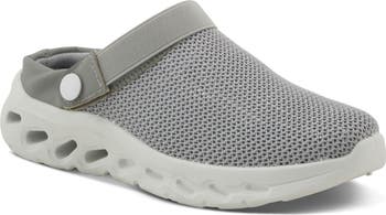 A flip-up back strap offers a secure fit and styling options for this comfort-focused sneaker made with a breathable mesh upper and arch-supporting cushioned insole.