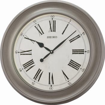The Seiko Noa is an oversized large 22" classic wall-mounted clock features an oversized round frame. The vintage design fits perfectly in with any home decor. The large Roman numerals are easy to read from any angle. Powered by 1 A battery (included). Overall dimensions: 22.44 X 22.44 X 1.85 inches. Quartz crystal movement allows for the most accurate time keeping. Perfect for the kitchen, family room or any living space.