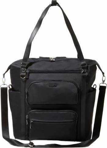 - Converts from backpack, to shoulder tote, to crossbody bag