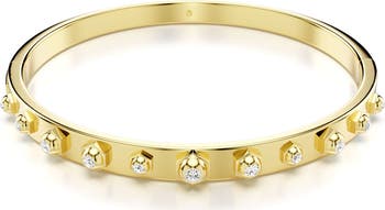 Industrial style and signature Swarovski elegance combine in this polished bangle topped with mixed-size crystals.