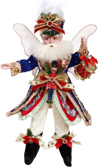 The Mark Roberts Nutcracker Fairy is a whimsical holiday collectible that blends classic nutcracker charm with elegant fairy detailing. Dressed in rich festive attire, it features intricate fabrics, sparkling accents, and signature handcrafted finishes that make each piece feel special. With a small drum held in its hand, this fairy adds a playful, musical touch to seasonal décor and stands out beautifully on mantels, tabletops, or in a Christmas display.