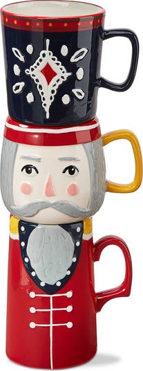 get extra cozy with this adorable stacking mug set! features beautiful nutcracker design and hand-painted detail. perfect to display on the kitchen counter or coffee bar area in the home. showcase your individual style and personality while enjoying your favorite drinks like coffee, tea and hot cocoa! retail ready packaging. mix and match with a range of mug selections from tag.