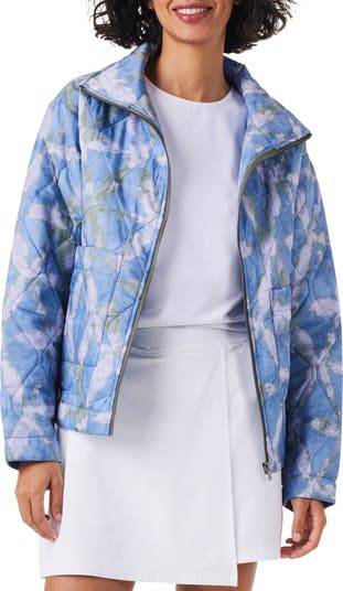 An eye-catching tie-dye print blankets a cozy puffer jacket that makes a great lightweight layer from errands to hangouts.