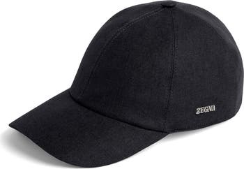 A classic six-panel ball cap is rendered in lightweight linen and elegantly embellished with a metal brand insignia along the side.