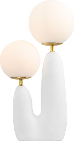 Oda 17.75" 2-Light Modern Bohemian Resin/Iron/Frosted Glass Danish Cactus LED Table Lamp