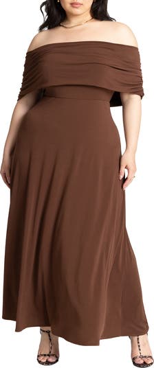 This curve-hugging silhouette features a sculpting bodice, flowy skirt, a flirty off-the-shoulder neckline that shows just enough skin. The soft, high-stretch knit will comfortably move with you—making every moment a chic one.