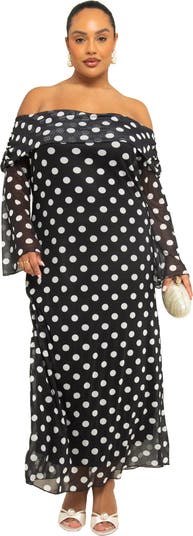 Off The Shoulder Polka Dot Midi Dress