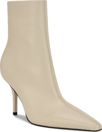 A snip toe and stiletto heel bring striking balance to a streamlined leather bootie fitted with a side zipper for easy and secure wear.