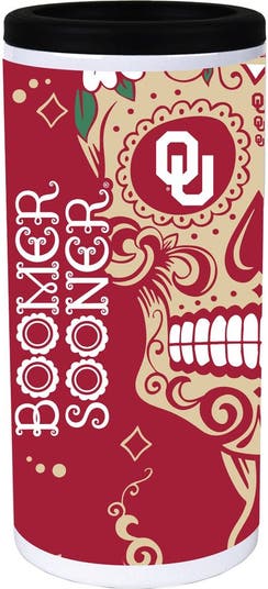Keep your beverage of choice deliciously cold for hours and your Oklahoma Sooners spirits high with this Dia Slim stainless steel can cooler. It features calavera graphics reminiscent of Dia de Los Muertos to provide a unique spin on your Oklahoma Sooners fandom. A sealed rim ensures your favorite beverage stays secure and condensation-free.