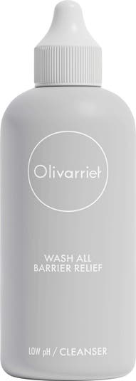 - Take everything off in one simple step. Olivarrier Wash All Barrier Relief Cleanser is a triple action (makeup remover, foam and moisture booster) cleanser that generates tiny micro-bubbles to remove sunscreen, makeup and deeply clean pores. With a mildly acidic/low pH of 5.5, it won t disturb the skin s delicate acid mantle (moisture barrier) as it lifts and dissolves impurities. Instead, cleansed skin is left hydrated and intact, not dried out. Eight plant-based, cold-pressed, organic oils (avocado, rose hip, broccoli seed, jojoba seed, sunflower seed, tomato seed, baobab and argan) richly nourish the skin with a concentrated dose of vitamins. Vegan ceramide, which mimics the lamellar (lipid) layer found in the skin, quickly absorbs to strengthen the skin s barrier without chemical solvents. Organic rose water further calms and hydrates.