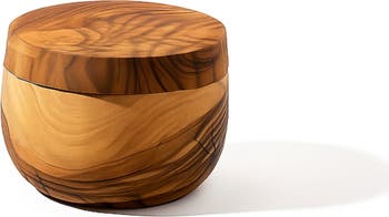 Handcrafted from premium olive wood, this elegant salt and spices cellar is perfect for storing seasonings and herbs. Its stylish design and rich natural grain add rustic charm to any kitchen decor. Enhance your culinary space with this durable and beautiful storage solution, keeping your spices fresh and accessible. Dimensions: • Diameter: 3.8inches (10cm) • Height: 2.7inches (7cm) Specifications: Food safe Do not put olivewood in the dishwasher Do not soak in water Hand wash with mild detergent and warm water Dry Immediately with a lint-free cloth Oil with olive oil once a month, or once a week if used frequently Handmade Material: Olivewood Completely natural Made in Tunisia Disclaimer: Our products are handmade, one at a time. As such, they re all unique in their own ways and you might spot imperfections such as small cracks, or irregularities in the shape of the products.
