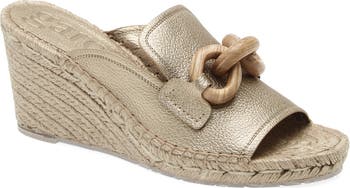 Wooden links and espadrille-inspired trim dial up the earthy vibes of this lofty wedge sandal.