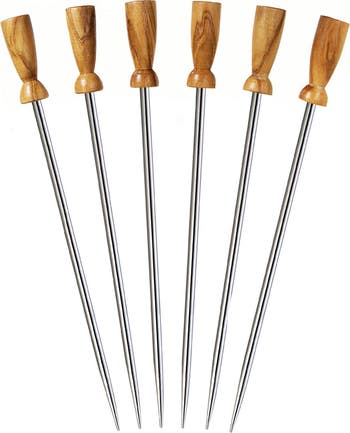The Prodyne Olivewood Stainless Steel Cocktail Picks, Set of 6, bring natural elegance to cocktails and appetizers. Each pick features a genuine olivewood top and a stainless steel shaft for durability and style. Reusable, rust-resistant, and dishwasher-safe, they’re perfect for martinis, olives, or entertaining in any setting.