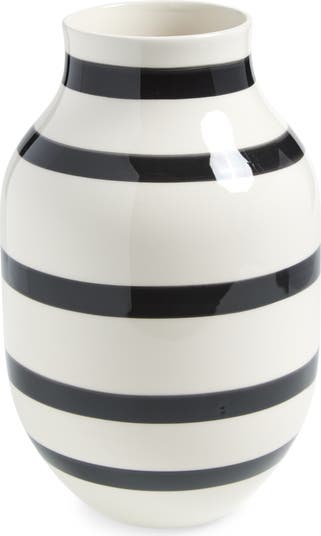 A gracefully curving silhouette is defined by the crisp, narrow stripes of this vase that s designed to complement a variety of decor styles.