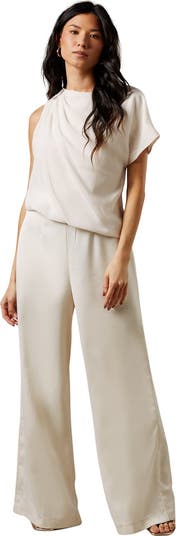 This elegant one-shoulder drape jumpsuit is ideal for stylish occasions, crafted for a sophisticated look. Perfect blend of comfort and fashion.