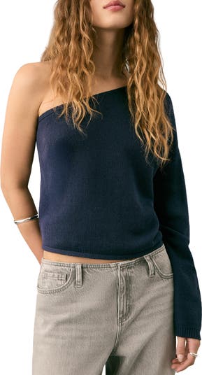 A relaxed cotton-blend sweater is made in a slouchy shoulder-baring silhouette and framed by a single sleeve.