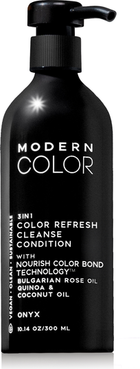Modern Color’s Onyx 3-in-1 Color Refresh + Cleanse + Conditioner delivers a rich, cool black tone while cleansing and conditioning in one step. This semi-permanent formula refreshes hair color, enhances shine, and improves manageability. It keeps black-hued and color-treated hair deep, vibrant, and healthy between salon visits without compromising hair integrity.