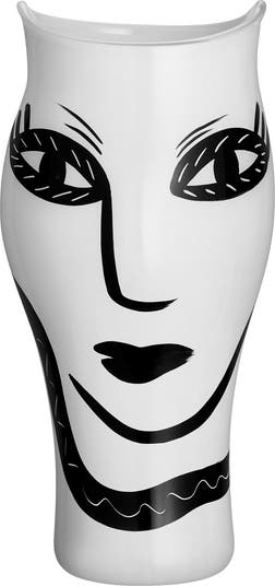 Hand-painted brushstrokes form a dramatic face on this mouthblown glass vase that looks stunning on its own or with a bouquet of flowers.