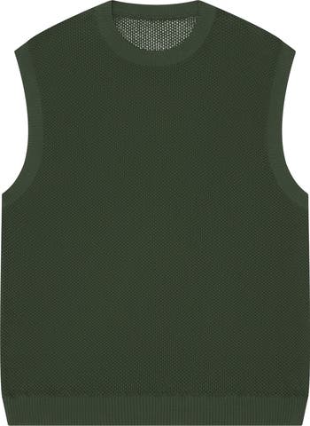 Airy, lightweight open stitching textures this boxy cropped sweater-vest knit with ribbed trim and perfect for layering up or wearing solo.