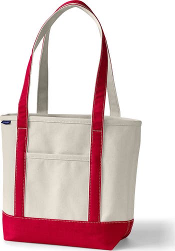 Our iconic Canvas Tote withstands the test of time because of the details we build into its genius design. Rugged 24-oz. cotton canvas makes it endlessly durable while the bottom and handles are reinforced so it can support a heavy load, making it perfect as a beach bag, to carry your laptop – whatever you require. A water-resistant base and trim protect it (and your things) from dampness, so don t worry about setting it down on a sidewalk after the rain. Pockets inside keep your smaller items easy to find and secure. Neatly-stitched seams give it a clean look.