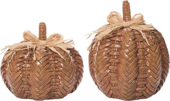 - Enhance your fall decor with this set of 2 vibrant orange rattanstyle pumpkins made from durable resin, perfect for tabletop displays. Easy to clean and maintain, ensuring your fall decor stays vibrant and fresh throughout the season. Enhance your fall decor with the Transpac Resin 6.5 in. Orange Harvest Rattan Style Pumpkin Set of 2, perfect for gift giving and seasonal tabletop accents. Pumpkins themed set in a vibrant orange.