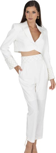 Elevate your style with the Orchid White Trouser, Gleaming and beading accentuate the waistline of the straight pants, while the comfy fit makes this ensemble perfect to elevate any occassion. Exude an effortless charm. Back zipper closure. Made in Turkey. Premium quality suiting fabric. 69% cotton /31% polyesterWhere to wear:Stylish lunch dates, nights out in the city, weekend breaks, brunch with the girls.