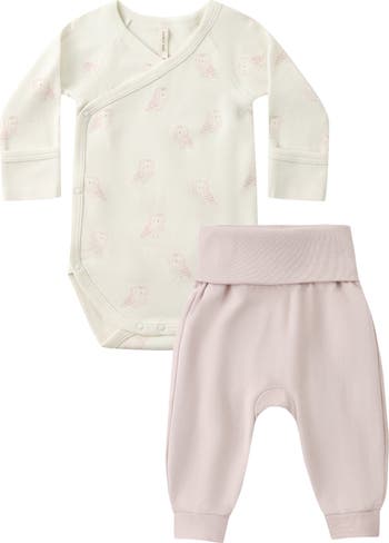 An adorable owl pattern adds irresistible charm to a comfy cotton bodysuit that pairs with roomy pants for an ideal playtime ensemble.