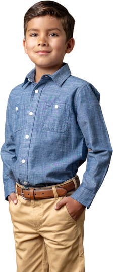Our classic long sleeve button down chambray shirt is cut from super soft organic cotton and is the "goes-with-everything" wardrobe staple he won t want to take off. Features matte buttons at the chest pockets, cuffs, and center front. Pairs perfectly with our beautiful collection of organic cotton, sweaters, pants, and shorts!