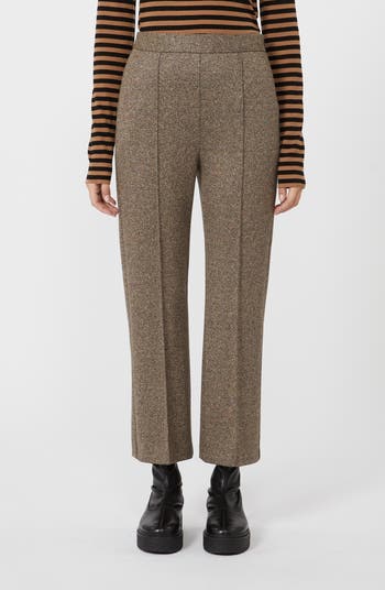 Vertical seams give an elongating look to these polished high-waist pants made in a tapered ankle-grazing silhouette.