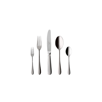 Oscar flatware features a classic, slender silhouette. Set a beautiful table with this streamlined collection of modern, functional pieces. 18/10 stainless steel offers strength, durability, rust resistance and an everlasting luster that never needs polishing . Dishwasher safe. The 20 piece , service for four includes 4 each: Dinner Fork, Salad Fork, Soup Spoon, Dinner Knife, and Teaspoon.