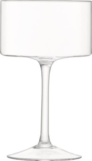 These mouthblown glasses feature a modern, angular design with cylindrical bowls perfect for cocktails or champagne.