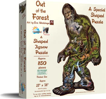 Explore the wonder of nature and art with the "Out of the Forest" Bigfoot Jigsaw Puzzle. This puzzle, crafted by the artist Eva Nikolskaya, features 850 interlocking pieces that promise a captivating challenge for both seasoned puzzle fans and beginners. Created with artistry in mind, this special-shaped puzzle offers a glimpse into a vibrant, wildlife-filled forest and measures 25” x 38” when complete. Manufactured in the USA, it combines durability and precision, made from high-quality recycled cardboard and printed using soy-based inks, reflecting a commitment to sustainability. Enjoy a satisfying puzzling experience with pieces that lock seamlessly together, ensuring hours of entertainment and a beautiful display once finished. As a thoughtful gift for nature lovers and art enthusiasts, the puzzle represents a harmonious blend of creative craftsmanship. This masterpiece not only tests your skills but also adds a magnificent element of nature to your decor.