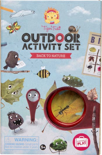 "OUTDOOR ACTIVITY SET - BACK TO NATURE - A gentle, activity-based introduction to mindfulness designed to get children off the couch, unplugged and outside exploring nature. This set is filled to the brim with engaging activities and hands-on projects. Designed to encourage observation and interaction with the environment, junior outdoor explorers can document cloud shapes, create mermaids out of found natural materials, play block bingo and a heap more. Great gift idea. Ideal for kids aged 5-9 years. Each set includes: 36 page outdoor activity book, 1x magnifying glass, 6x colored chalk, HB Pencil, Compact magnetic sealed storage box. Our mission - We’re a design-led Australian brand that creates gifts which nurture confidence and creativity in kids."