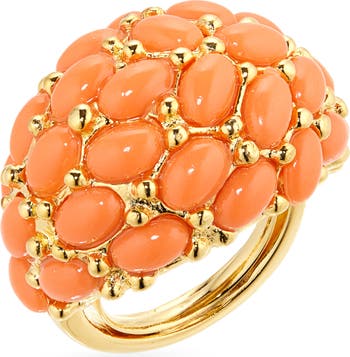 Oval resin stones create a colorful cluster on this adjustable cocktail ring done in a domed silhouette.