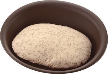 OVAL PET BED: MEDIUM - BROWN - Treat your pet to the ultimate comfort with Richell s Oval Pet Bed. Crafted from durable yet flexible plastic, this bed is not only easy to clean but also waterproof, allowing for hassle-free maintenance. Simply wipe off for daily cleaning or wash the entire bed with soap and water for a deep clean. The included washable cushion ensures freshness and provides a cozy sleeping surface for your pet. Versatile and comfortable, this flexible plastic pet bed offers the perfect retreat for your pet s quiet time all year round. Made of durable, waterproof flexible plastic for easy cleaning. Includes washable cushion (100% polyester). Cushion size: (Medium) 21.7 x 16.1 x 2.2”. Frame Size: 26.4"L x 19.9"W x 8.3"H. Recommended for small dog and cats.