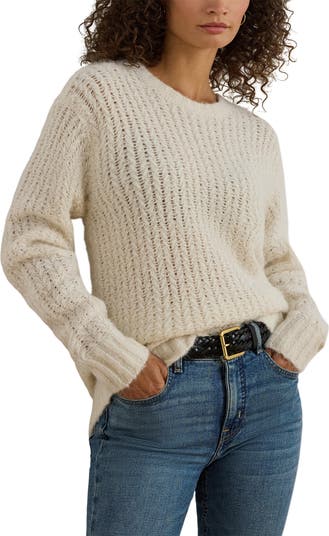 Airy open stitching brings breathable charm to this wool-kissed sweater knit in an oversized fit.