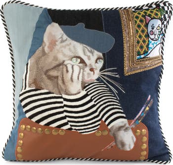 Give your favorite cozy nook a little meow-wow with the purrfect work of art on this whimsically embellished pillow.