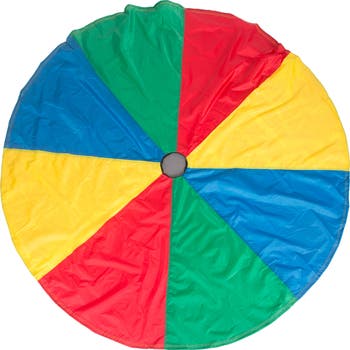 This bright and bold parachute made of durable ripstop taffeta is big enough for several children to play with it together.