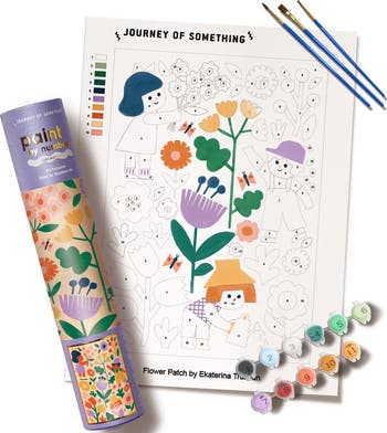 JOURNEY OF SOMETHING: FLOWER PATCH PAINT BY NUMBERS KIT - Let young artists explore their creativity with the Flower Patch Paint by Numbers Kit, designed for kids aged 5 to 12 (and fun for adults too). This adorable painting set makes it easy and exciting to create a frame-worthy masterpiece, complete with vibrant colors and charming floral designs. With a quality A4 canvas, 18 pots of paint, and three precision brushes, this kit provides everything needed for a fun and mess-free painting experience. Follow the Picture Reference Card or let imagination run wild with custom colors! WHAT’S INCLUDED: A4 Canvas (8.3 x 11.7 inches) - Pre-designed for guided painting. 18 Pots of Paints - A colorful selection for a vibrant finish. 3 Brushes - A variety of sizes for detailed strokes. 1 Picture Reference Card - A helpful guide for young artists. WHY YOU’LL LOVE IT: Encourages Creativity and Self-Expression - A fun way to build confidence through art. Easy for Kids Ages 5 to 12 - A simple yet engaging painting activity. Designed by Ekaterina Trukhan - A talented illustrator known for playful, joyful artwork. Mindful and Screen-Free Activity - A great alternative to digital entertainment.