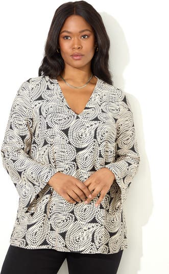 This elegant paisley blouse combines style with comfort, featuring split sleeves and a flattering V neckline, perfect for any wardrobe.