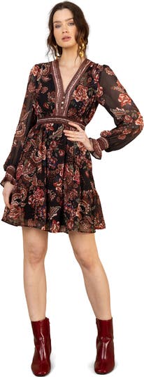 Washed chiffon Body is lined Buttons at front neck Smocking at waist Pockets at hips Long sleeve with smocked cuff Voluminous skirt Above the knee length (35.5” HPS)