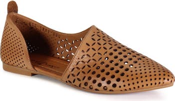 Complete your look with the contemporary style of this asymmetric flat fashioned from perforated leather and grounded by lightweight cushioning.