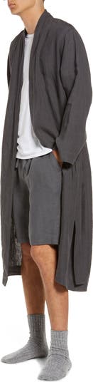 Garment-washed European flax lends a cozy, lived-in feel to a soft robe in slightly heavier linen for the perfect drape.
