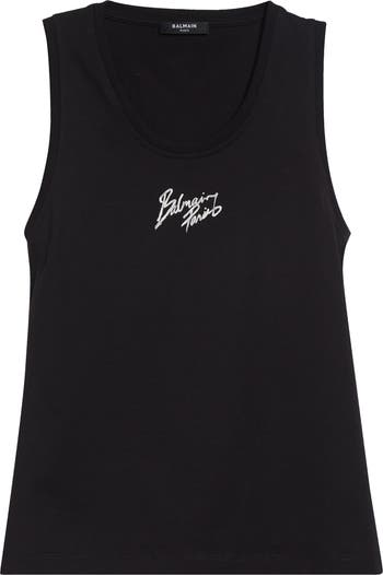 Centered with a Paris brush-print logo, this lightweight cotton jersey tank is fashioned with a gently scooped neck.