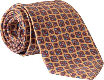 This exquisite handmade madder silk tie has a soft dull finish and classic medallion print. 100% Made in Como, Italy.